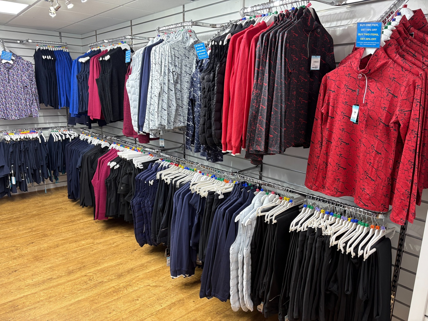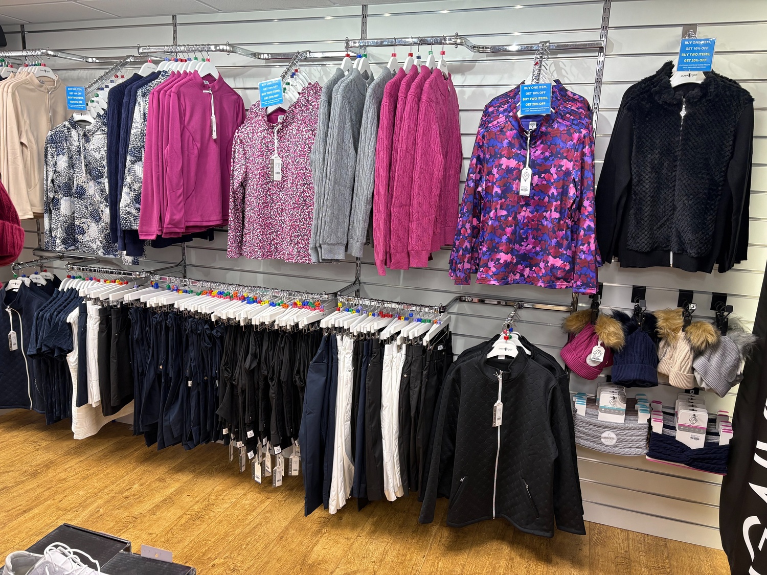 We can proudly say that we are a golf store that cares and caters for lady golfers – we have an unparalleled range of lady’s golf clothing, shoes and waterproofs, stocking a wide range of brands and sizes. We stock a range of styles in both summer and winter clothing, and with our fantastic multi-buy offer (available on clothing, shoes and waterproofs) – the more that you buy, the more that you save!