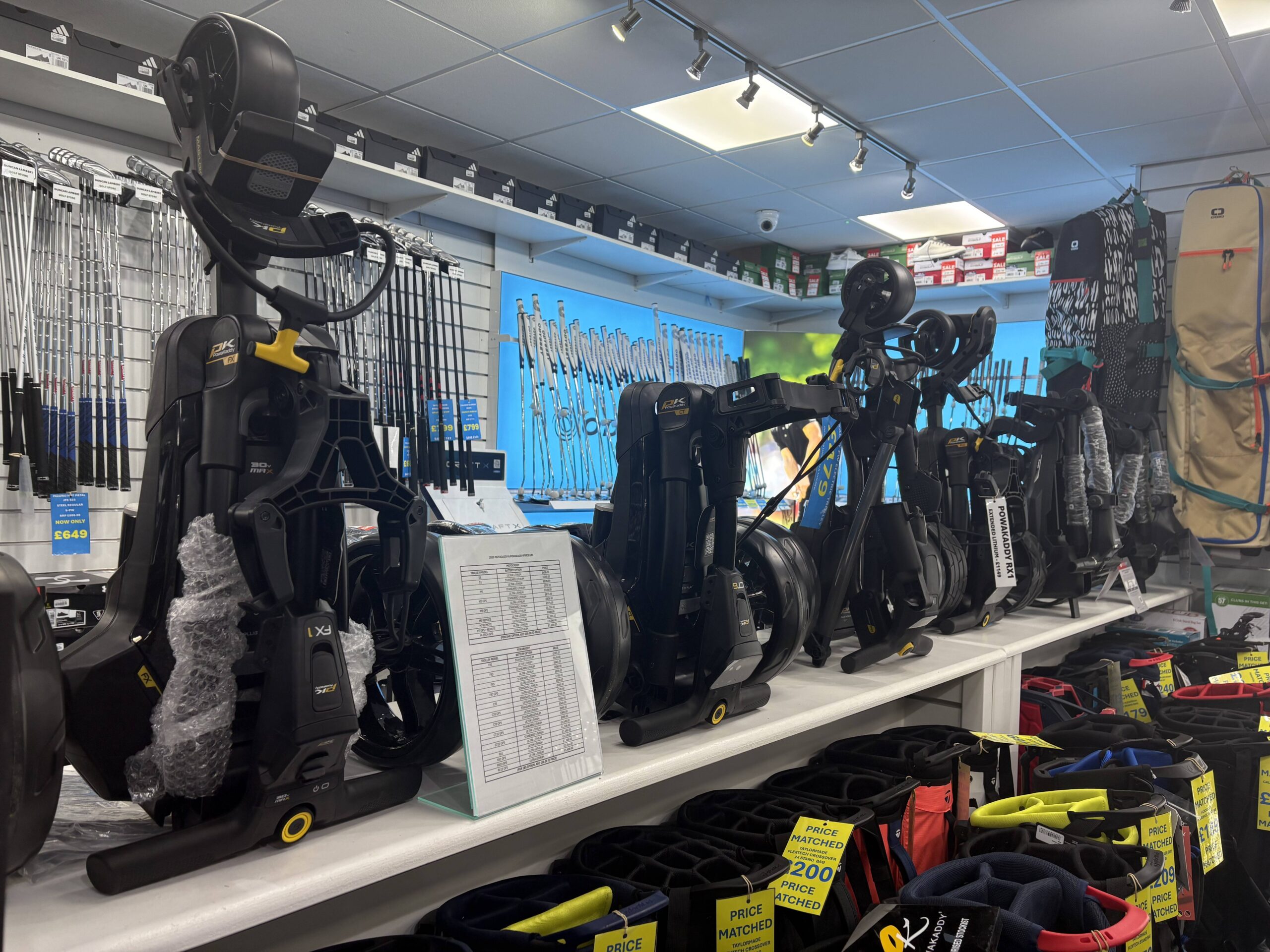 We’ve got the best selection of all things golf in Kent, and one of the best selections in the whole of the south-east; from electric trolleys to waterproofs, men’s & women’s clothing to shoes, we’ve got it all. Our 2,000 square foot shop is filled with the latest stock from some of golf’s biggest and best brands, including popular favourites like J. Lindeberg, FootJoy, Under Armour & Adidas.